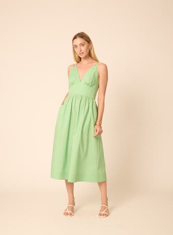 Halter midi dress with adjustable straps and side pockets in cotton fabric