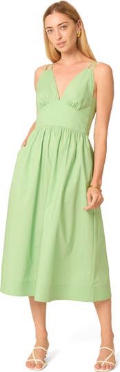 Halter midi dress with adjustable straps and side pockets in cotton fabric
