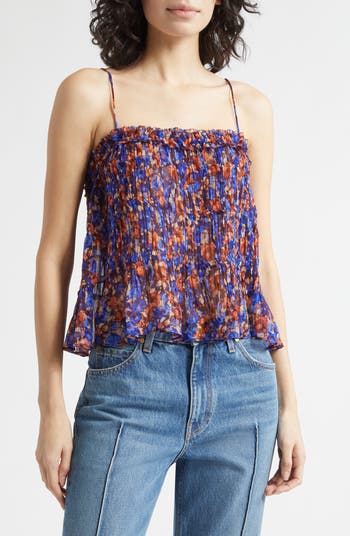 Made from crinkled silk, this airy square-neck tank with a flippy hem and shorter silhouette will be one you'll reach for again and again.