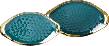 Make your guests say, "œwow" with the Stone Lain Florian porcelain oval serving plate set with handles. Pair it with our best-selling Florian dinnerware set to complete the look, or let it be the star of a more simple table setting"ineither way, the gold trim and thumbprint pattern make an elegant statement. The set comes with two pieces, a medium and a large.