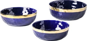 Level up any tablescape with the Stone Lain Florian round bowl set. With gold edges, thumbprint patterning and bold colour options, these bowls add elegance and glam to both casual and more formal looks. The set includes three sizes (small, medium, and large) all of which have a nice depth, perfect for your favorite salads and sides.