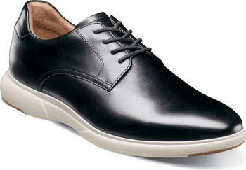 Luxury and sport merge in this smooth leather derby outfitted with a cushioned insole and a flexible, sneaker-inspired sole.