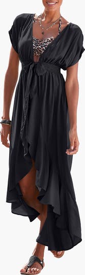 The flounces on the asymmetrical hem give this beach cover up a playful and flowy look.