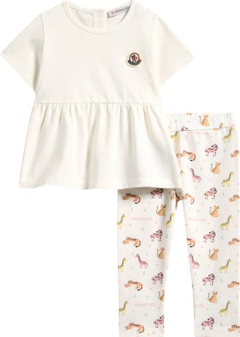 Made from soft stretchy cotton that feels soft against baby's skin, this adorable ensemble pairs a flounce-hem top with animal-print leggings.