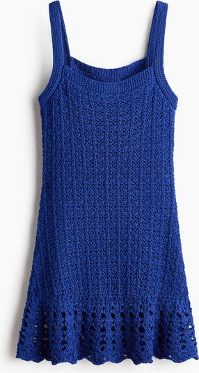 Fitted mini dress in a soft pointelle knit with a square neckline, wide shoulder straps and a wide, scalloped flounce at the hem.