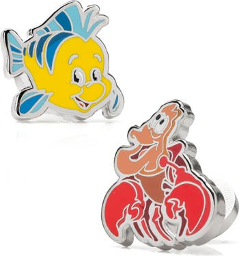Inspired by Disney’s The Little Mermaid, these charming cuff links showcase Ariel's companions—playful Flounder and ever-dutiful Sebastian—in vibrant enamel and polished metal. Designed for fans of the beloved tale, they add a whimsical touch to your formal look while celebrating the magic of friendship and adventure. Whether you’re off to a gala 'Under the Sea' or simply adding a hint of Disney enchantment to your outfit, these cuff links are sure to make a splash.