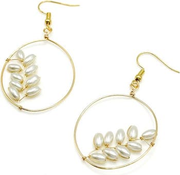 Hand-wired branches of 9 white majorca pearls adorn the side of each of these mirror image oblong gold plated earrings. Reminding us how our artisans and our jewelry company are flourishing as you continue to purchase and support Alegria! Hypoallergenic fishhooks hold this little masterpiece. Wear them alone, or with the Embrace or Empowering necklace and Empowering bracelet. 2 3/8 inch total length.