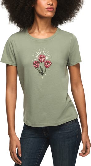 A graphic of a bright bouquet sits at the center of this all-cotton T-shirt.