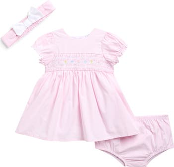 - Includes headband, dress and coordinating bloomers