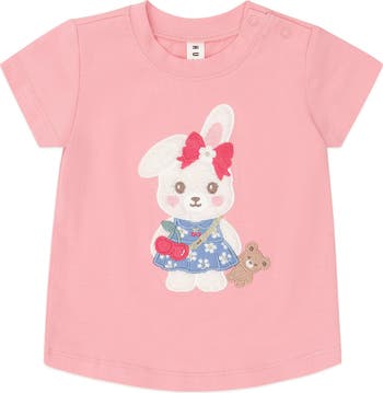 The perfect everyday tee, but with added fun. This round neck t-shirt is made from buttery-soft organic cotton in bold biolet and features a floral bunny embroidery. Baby sizes feature stainless steel shoulder snaps for quick changes.