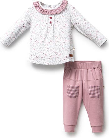 The Flower Garden Outfit Set blooms with soft color tones and delicate floral patterns, creating a sweet and graceful look. This coordinated set pairs a comfy top with matching bottoms, perfect for sunny days, playdates, or special moments. Made from lightweight, breathable fabric, it offers all-day comfort wrapped in gentle style. Coordinated top and bottoms with charming floral designs.