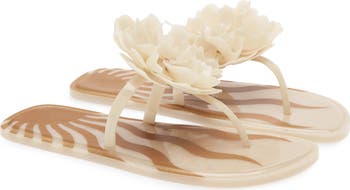 The Brazilian label brings their tropical, vibrant aesthetic to this jelly flip-flop topped with a floral appliqué in full bloom.