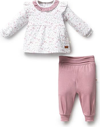 The Flower Neckline Ruffle Outfit radiates delicate charm with its soft color hue and lovely floral accents along the ruffled neckline. This coordinated set features a comfortable top and matching bottoms, perfect for adding a touch of whimsy to everyday wear or special occasions. Crafted from lightweight, breathable fabric, it ensures all-day comfort with a feminine flair. Ruffled neckline decorated with subtle flower details.