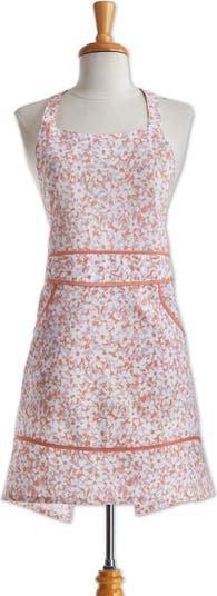 - The Flower Petals Pink Cotton Apron is made of soft cotton fabric, measures 29 inches in length and 38 inches in width, and features a hand screen printed floral design.