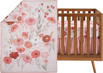 - 3-piece crib bedding set includes one quilt, one fitted crib sheet, and one crib skirt