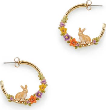 Beautiful rabbit hoop earrings. Hand-painted enamel nature-inspired earrings, beautifully carved and enamelled by hand.