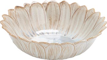 Add a gentle sense of organic beauty to any table with this Flower-Shaped Stoneware Bowl, delicately finished in a reactive glaze that blends coastal white and ocean blue hues. The softly curved petals evoke floral elegance while offering a generous surface for everyday meals or decorative styling. Whether set in a Garden-themed brunch or part of a cozy Farmhouse kitchen, its handcrafted appearance suits relaxed, nature-rooted interiors. Made of stoneware with a reactive glaze for rich, one-of-a-kind coloration. Measures 8 inches in diameter and 1.25 inches in height. A soothing accent that transforms simple settings into thoughtful moments.