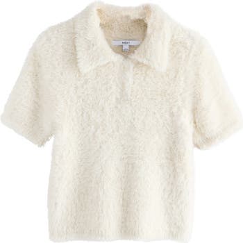 Channel the preppy aesthetic in a collared short-sleeve shirt crafted from fluffy faux fur to reimagine your everyday look.
