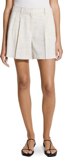 High-waisted shorts keep your look casually polished with neat checks and a linen-forward fabric.