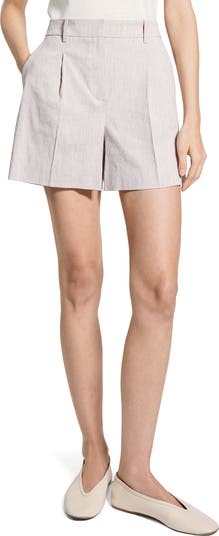 High-waisted shorts keep your look casually polished with crisp pleats and a linen-forward fabric.
