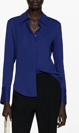 A graceful drape and covered button placket elevate a staple shirt you'll wear for desk days and drinks dates.