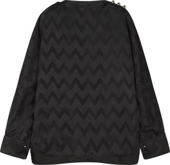 The loose, flowing cut of this top makes it perfect for comfortable everyday wear. Silver buttons at the neckline and cuffs add a touch of subtle elegance..