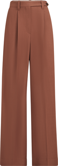 - Zipper closure with metal hooks and backing buttonsVertical front pocketsDouble pleatBack welt pocketsPlain hem