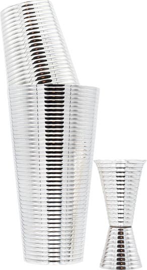 Fluted Silver 3-Piece Cocktail Shaker Set