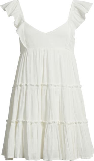 This gauzy babydoll dress perfect for warm weather is framed by fluttery cap sleeves and fashioned with ruffly tiers below the Empire waist.