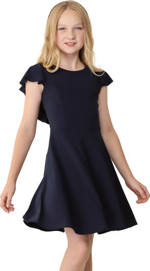 Stretch jersey makes dancing all night long comfortable in a fit-and-flare dress finished with fluttery cap sleeves.