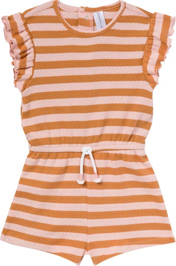 She'll feel effortlessly fashionable in this one-piece baby or toddler girl's outfit, perfect for sunny day fun! Crafted from 100% cotton to be soft on her skin, this outfit offers a relaxed fit with an elastic waistband for comfort. The flutter sleeves add a playful and stylish twist, while snaps down the back make for easy, no-fuss dressing. Whether you’re out and about or just relaxing, this breezy outfit is perfect for keeping things cute and comfy! Our essentials have been independently certified with STANDARD 100 by OEKO-TEX® so that you don’t have to worry about harmful substances in your baby’s wardrobe. Pack includes one romper.