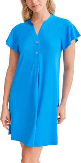 Drift off to dreamland in the comfort of this stretchy micro-modal sleep shirt updated with a satiny collar and fluttering raglan sleeves.