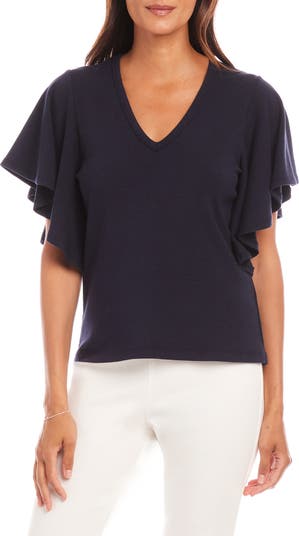 Give your go-to stack of T-shirts the day off and reach for the languid ruffles of this smooth, stretchy V-neck that gives your look a pretty finish without sacrificing any comfort.