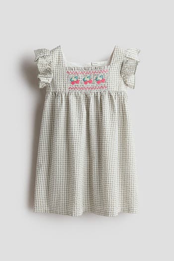 Dress in soft poplin made from high-quality cotton with an all-over print. Square neckline, a smocked section at the top, and an opening with buttons at the back. Flutter sleeves, gathers above the waist and a flared skirt. Partly lined. The H&M Adorables collection is a curated selection of high-comfort, quality pieces with a timeless appeal.