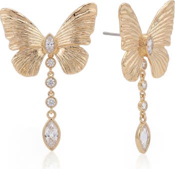 Bring the organic charm of nature to your ensemble with these statement-sized butterfly earrings highlighted by trickles of cubic zirconia bezels.