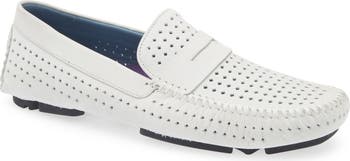 Ultrasoft lambskin leather lining ensures comfortable strides and rides in this water-resistant nubuck driving shoe perforated for maximum breathability.