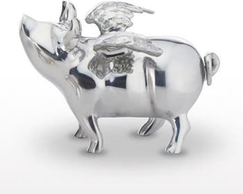 Flying pigs with wings as money banks make charming and charming gifts for a newborn or young children. A reminder that pigs do fly; they are a whimsical additions to any nursery or a young child's room, firing their imagination. Each of our creations is designed in our San Francisco studio. Master craftsmen using centuries old technique of sand casting create the original mould and skilled artisans hand create every piece, with pride, in our family owned factory.