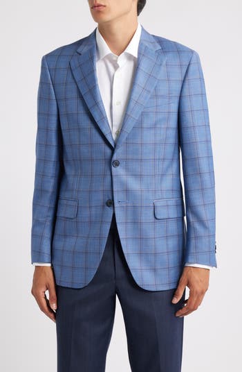 Subtly slubbed Italian wool patterned in a plaid of blues and golds distinguishes a sport coat tailored in a comfortable fit with light padding in the shoulders emphasizing the traditionally fitted waist. Fully lined, it adds a smart finish to your semiformal and elevated-casual looks.