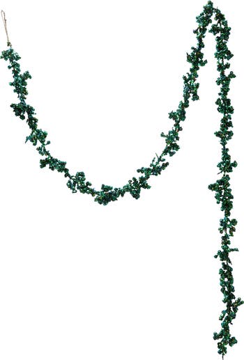 - A stunning foam and glitter ball garland in an iridescent green finish