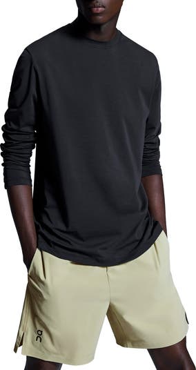 Dropped shoulders and moisture-wicking fabric ensure athletic ease in this long-sleeve T-shirt made from a pima-cotton blend.