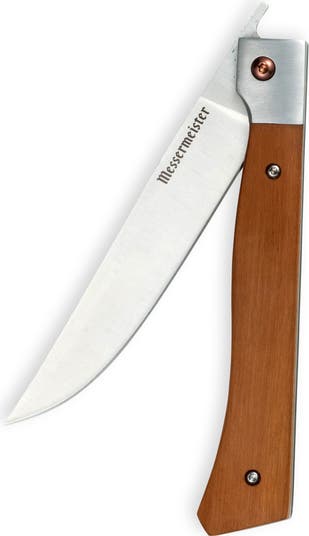 Sharp, sleek, and ready for action—the Messermeister Folding Steak Knife - 4" brings pro-level performance in a compact, travel-friendly design. Whether you're slicing into a ribeye at a backyard BBQ or packing for a camping trip, this folding steak knife delivers clean, precise cuts every time. Crafted with a high-quality stainless steel blade and a secure locking mechanism, it’s built for safety and smooth operation. The ergonomic handle offers a comfortable, controlled grip, while the foldable design makes it easy to stash in your pocket, picnic basket, or gear bag. Durable, portable, and always sharp, this knife ensures steak night stays classy—wherever you are.