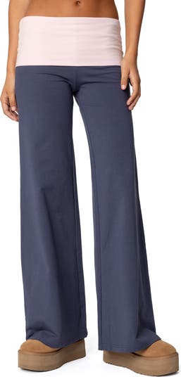A fold-over waist brings stylish contrast to wide-leg pants fashioned from comfortable stretch cotton and perfect for elevating your cozy weekend look.