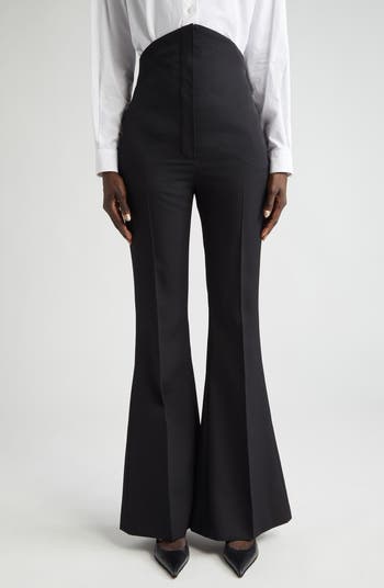 McQueen's love for dramatic proportions shines through in these Italian-made flare-leg pants constructed from breathable wool with a soaring high waist that folds over.