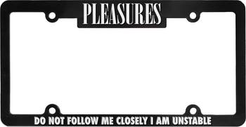 A kind warning to your fellow road warriors stamps this frame that puts an irreverent finish around your license plate.