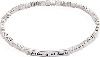 Let your inner compass guide you. This textured beaded stretch bracelet features a sleek engraved plate with a shimmering crystal star detail, reminding you to Follow Your Heart. A bold yet meaningful piece for those chasing their dreams.