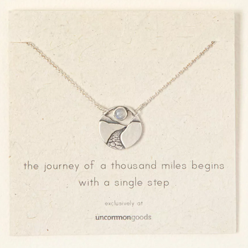 A symbolic pendant for those embarking on a journey—with a glowing moonstone moon lighting the way. It's one of our culture's most beautiful adages: Life's a journey, not a destination. Britta Ambauen's necklace lets adventurers wear it every day.