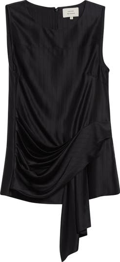 Crafted in Italy from a silk-enriched tonal stripe fabrication, this elegant top is pleated and draped into a wide sash that waterfalls down in front.