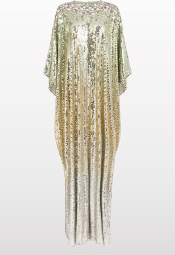 A statement in effortless glamour, this gown is cut in a relaxed, flowing silhouette that drapes beautifully over the body. Its fluid design catches the light with every movement, while the softly rounded neckline adds balance to the dramatic shape. An elegant choice for evening galas or black-tie celebrations.