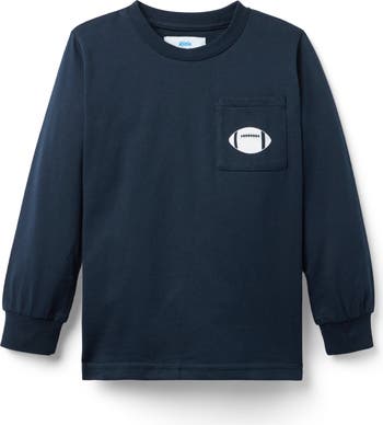 Boys long sleeve knit pocket tee featuring a classic football on the pocket. Made from soft, breathable cotton for comfort and durability.