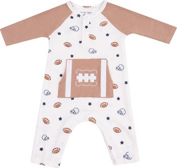 A football print keeps you future All-Star looking cool in this raglan-sleeve romper cut from a soft waffle knit and secured by snap closures for easy changes.